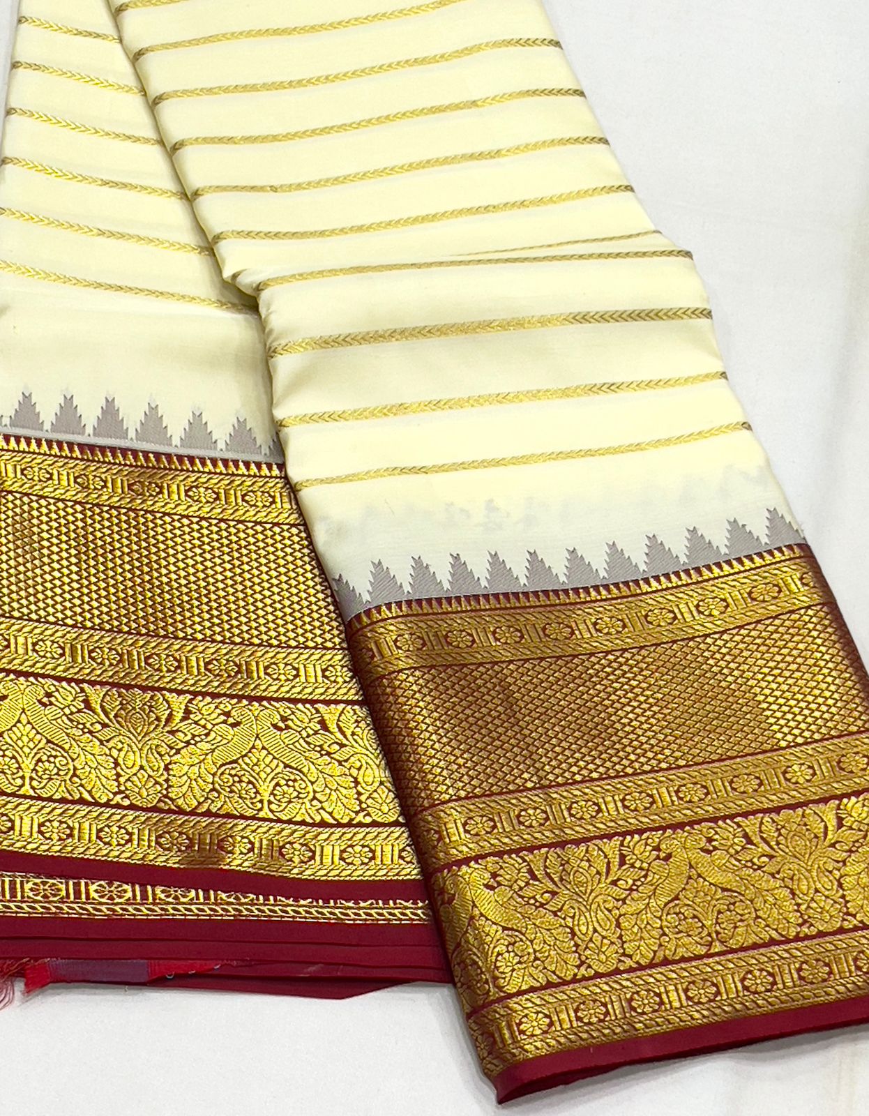 CREAM/MAROON BORDER COMBITION PURE KANCHI SILK SAREE