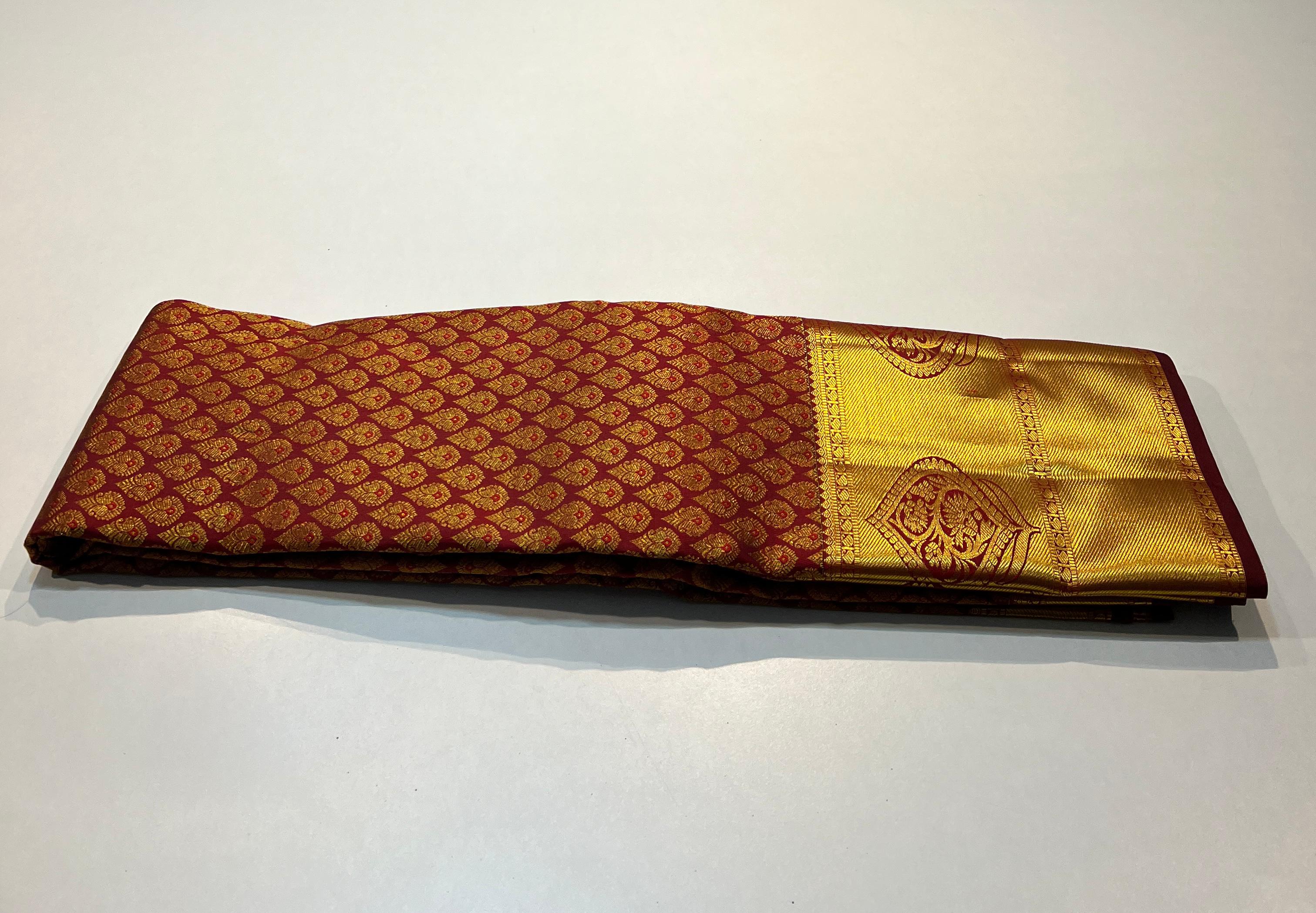 MAROON/ GOLD ZARI KANCHI SILK SAREE