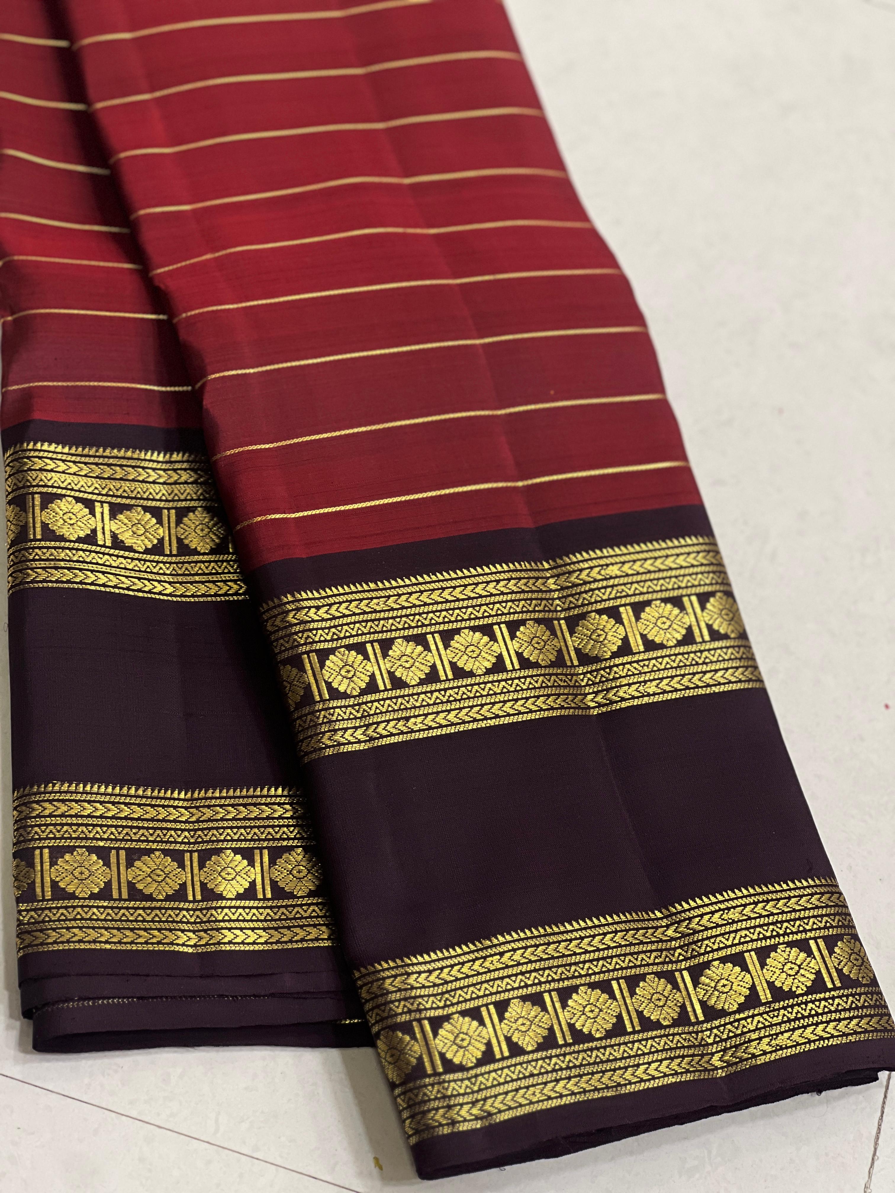 MAROON/BROWN COLOUR COMBITION PURE KANCHI SILK SAREE