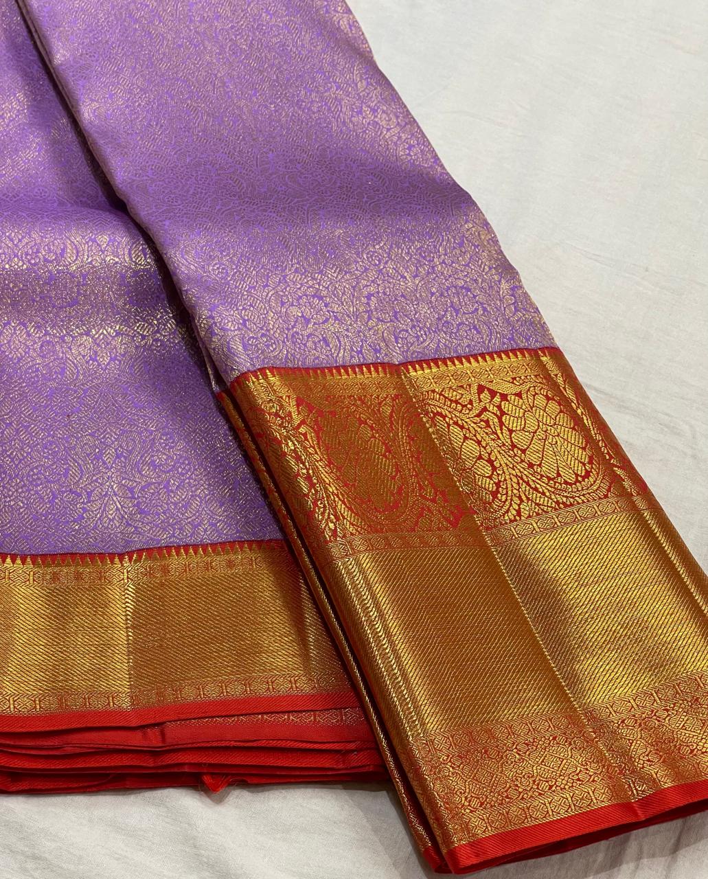 RED/LAVENDER  COMBITION PURE KANCHI SILK SAREE