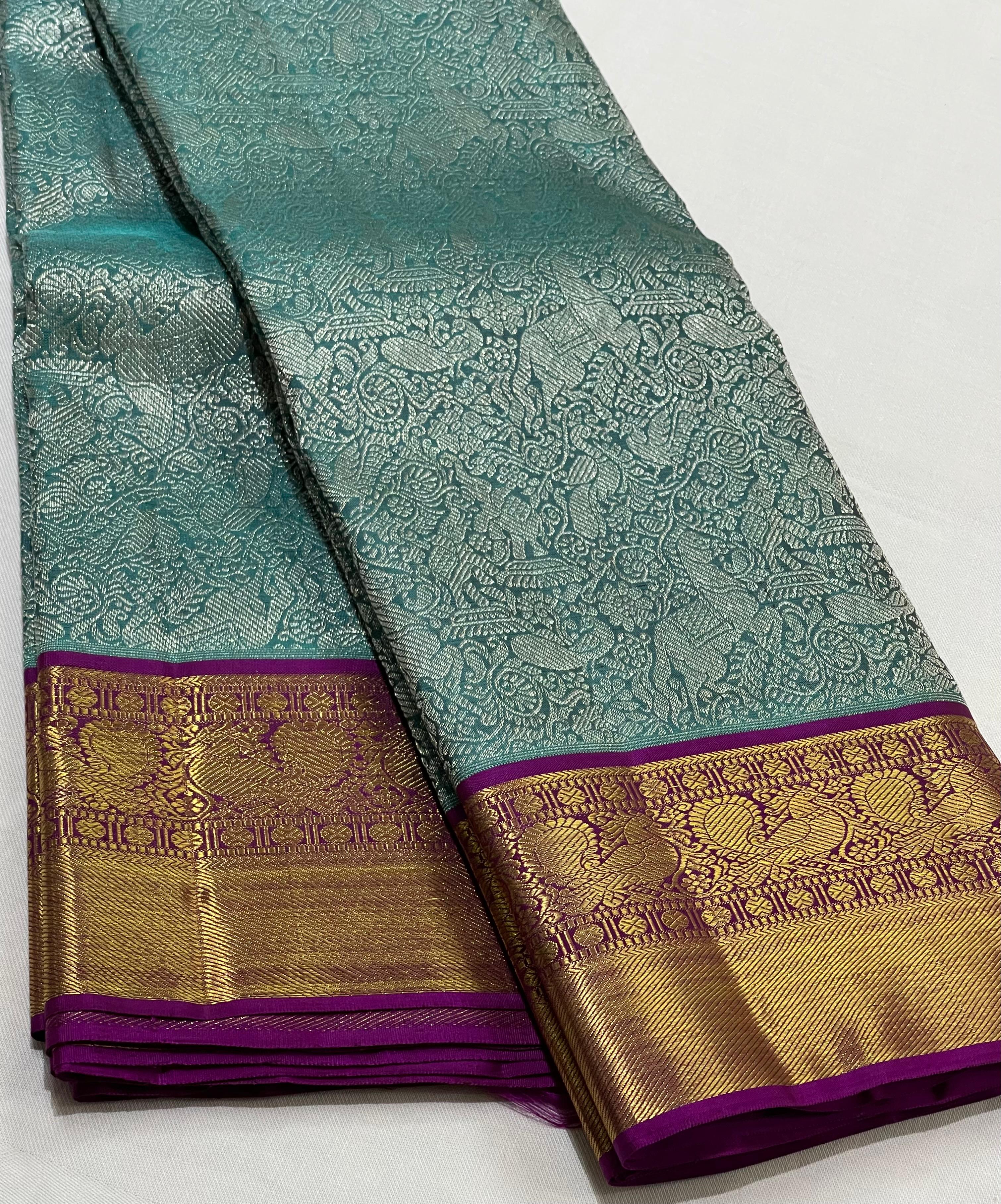 LITE BLUE/PURPLE BORDER COMBITION PURE KANCHI SILK SAREE