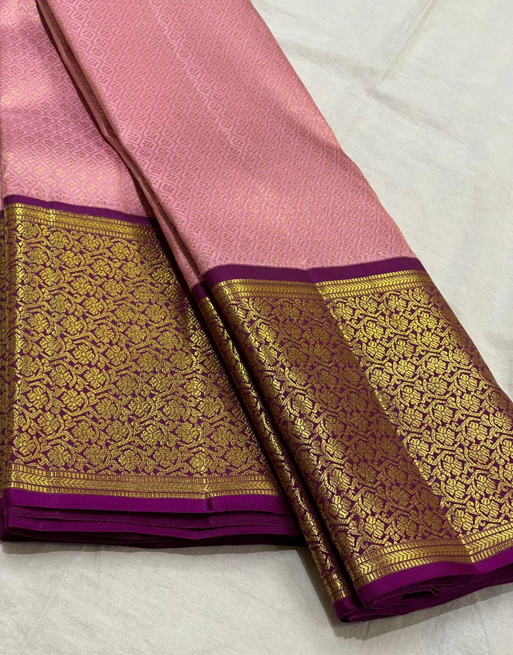 BABY PINK/PURPLE  COMBITION PURE KANCHI SILK SAREE