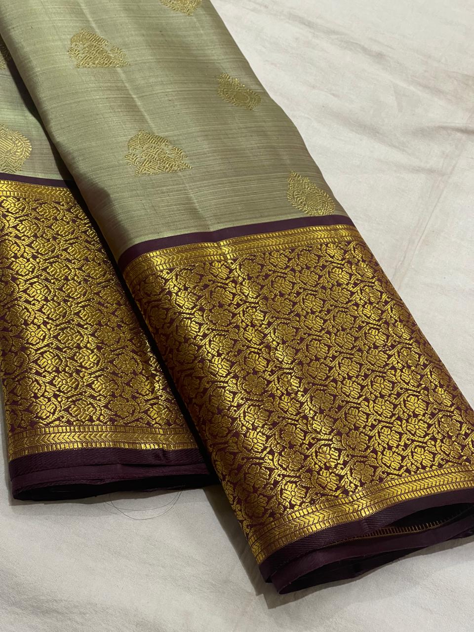 BROWN/GREY COMBITION PURE KANCHI SILK SAREE