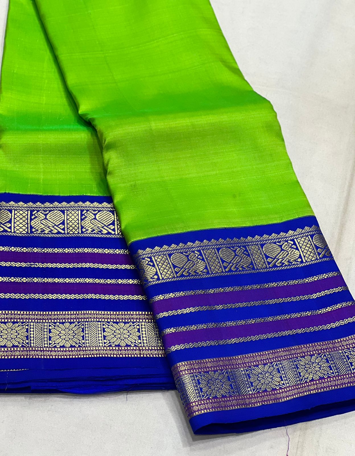 PARROT GREEN/ROYAL BLUE  BORDER COMBITION PURE KANCHI SILK SAREE