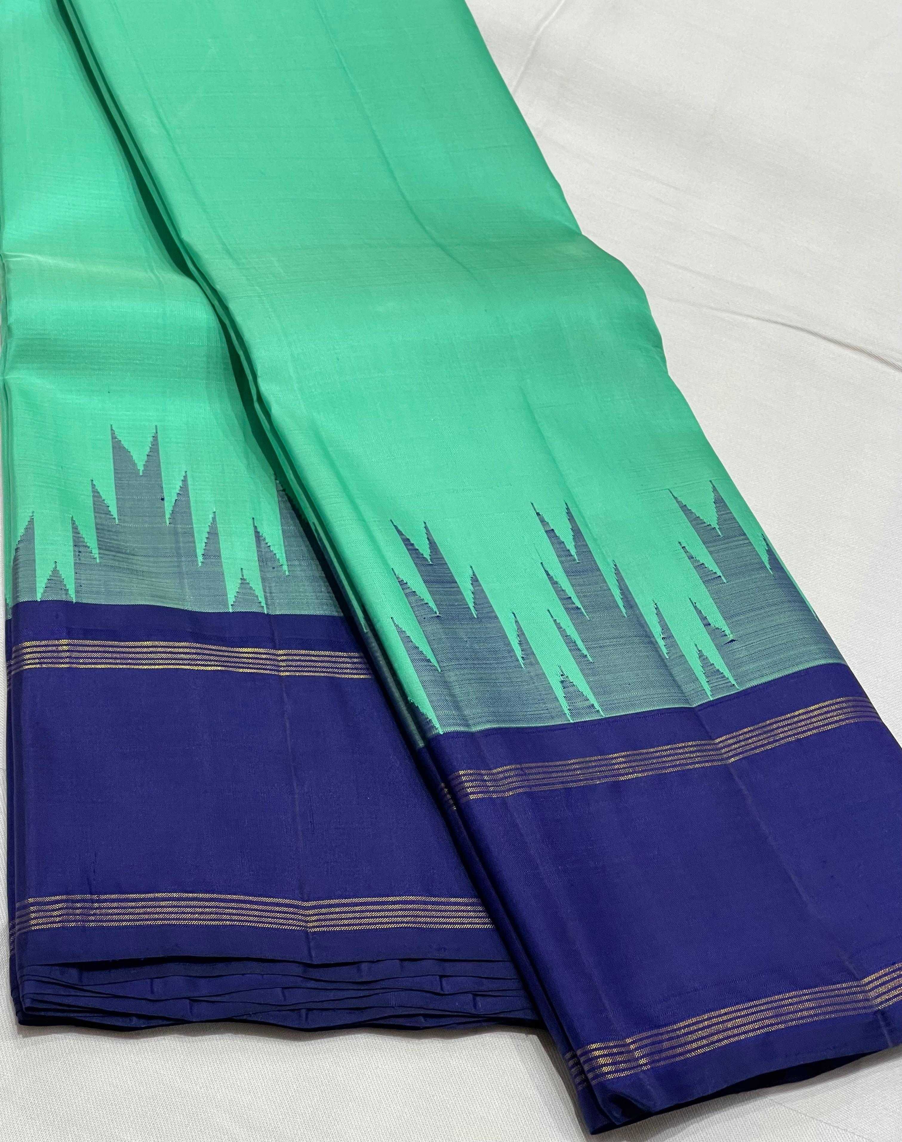 SKY BLUE/NAVY BLUE BORDER COMBITION PURE KANCHI SILK SAREE