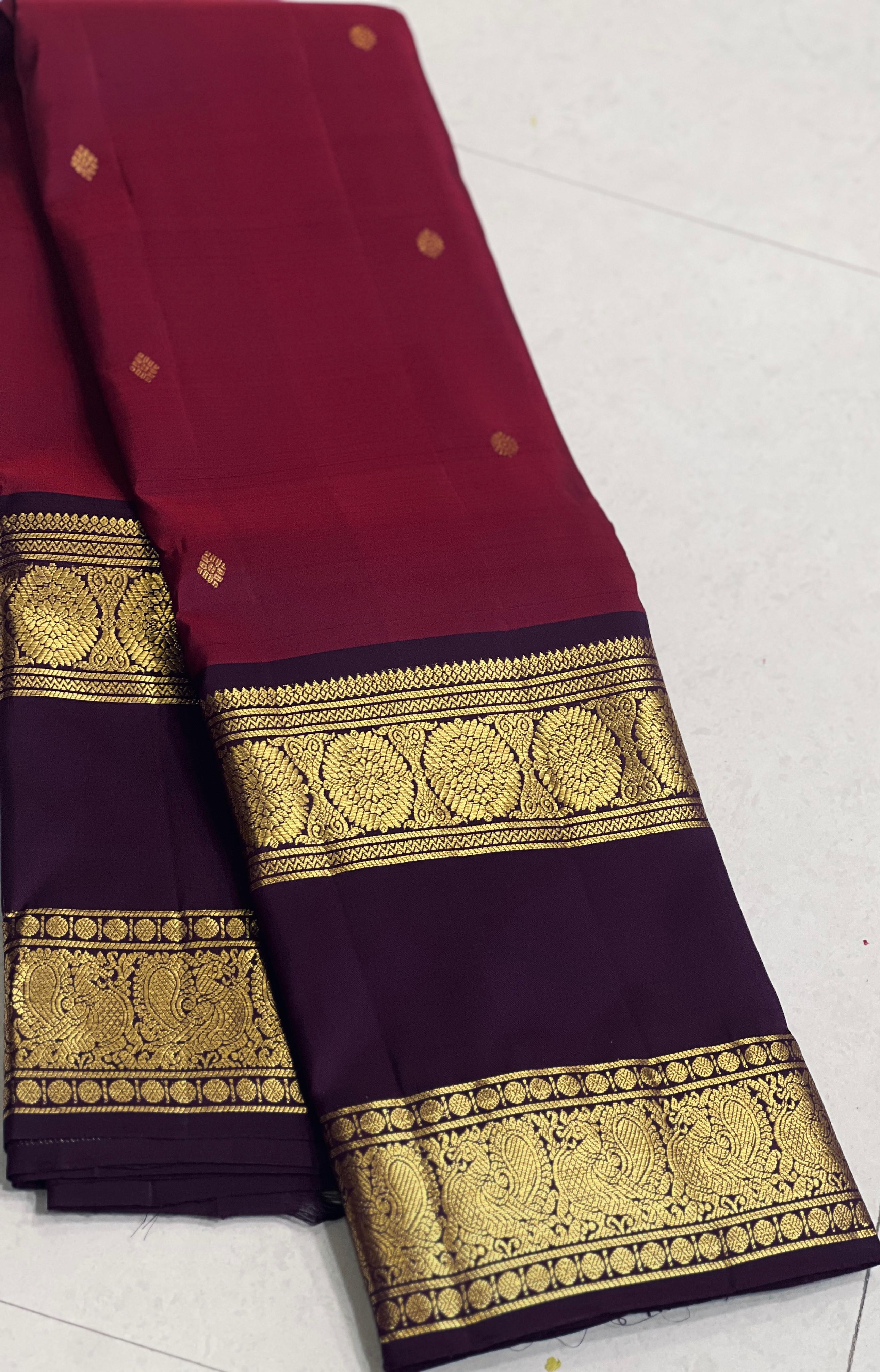 MAGENTA PINK/WINE BORDER COMBITION PURE KANCHI SILK SAREE