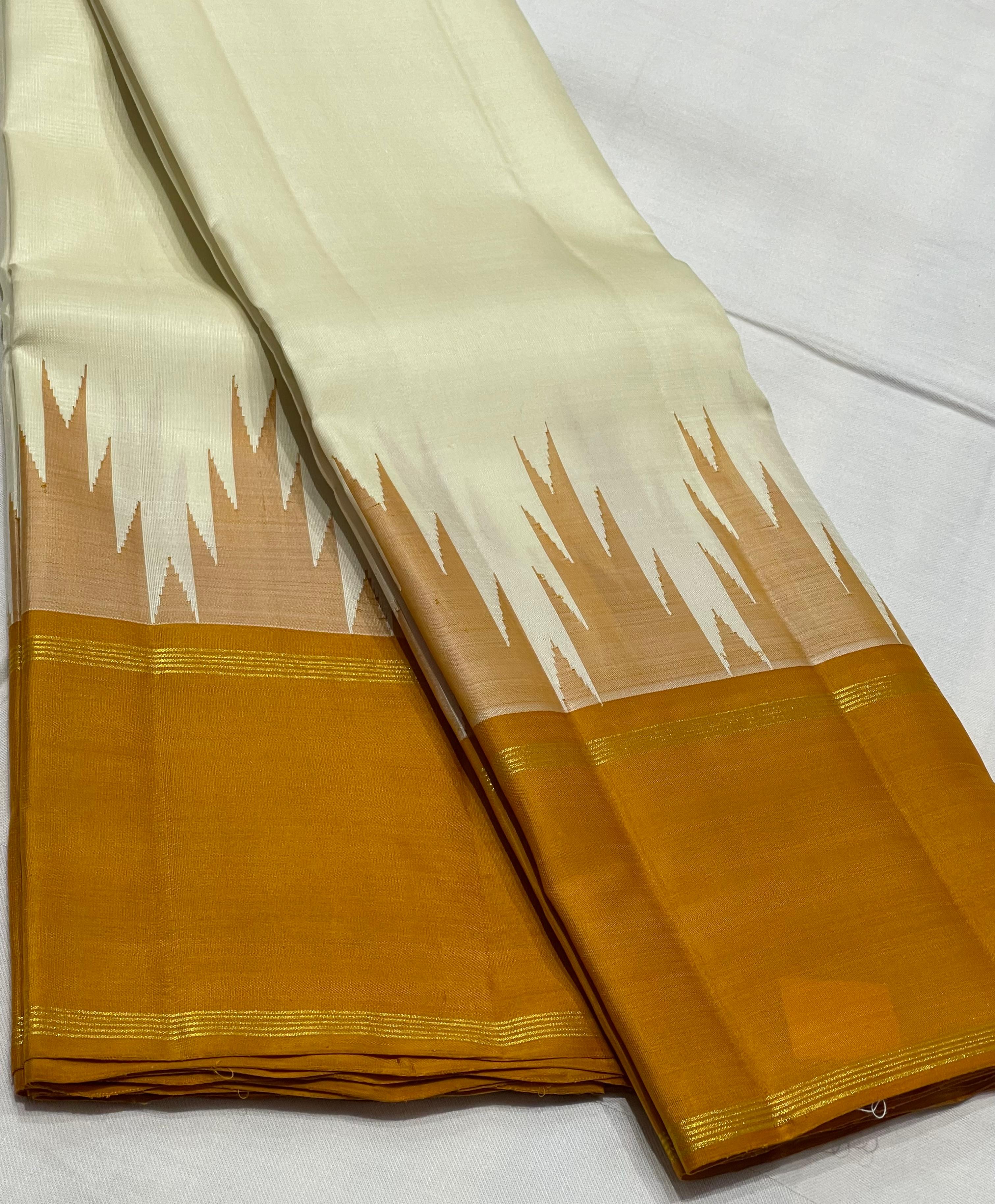 CREAM/MUSTURD YELLOW BORDER COMBITION PURE KANCHI SILK SAREE