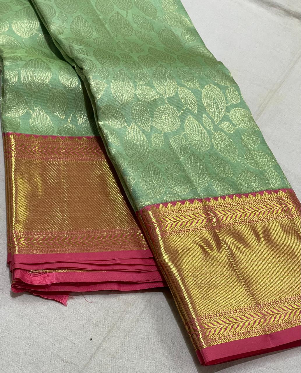 SEA GREEN / PINK  COLOUR COMBITION PURE KANCHI SILK SAREE