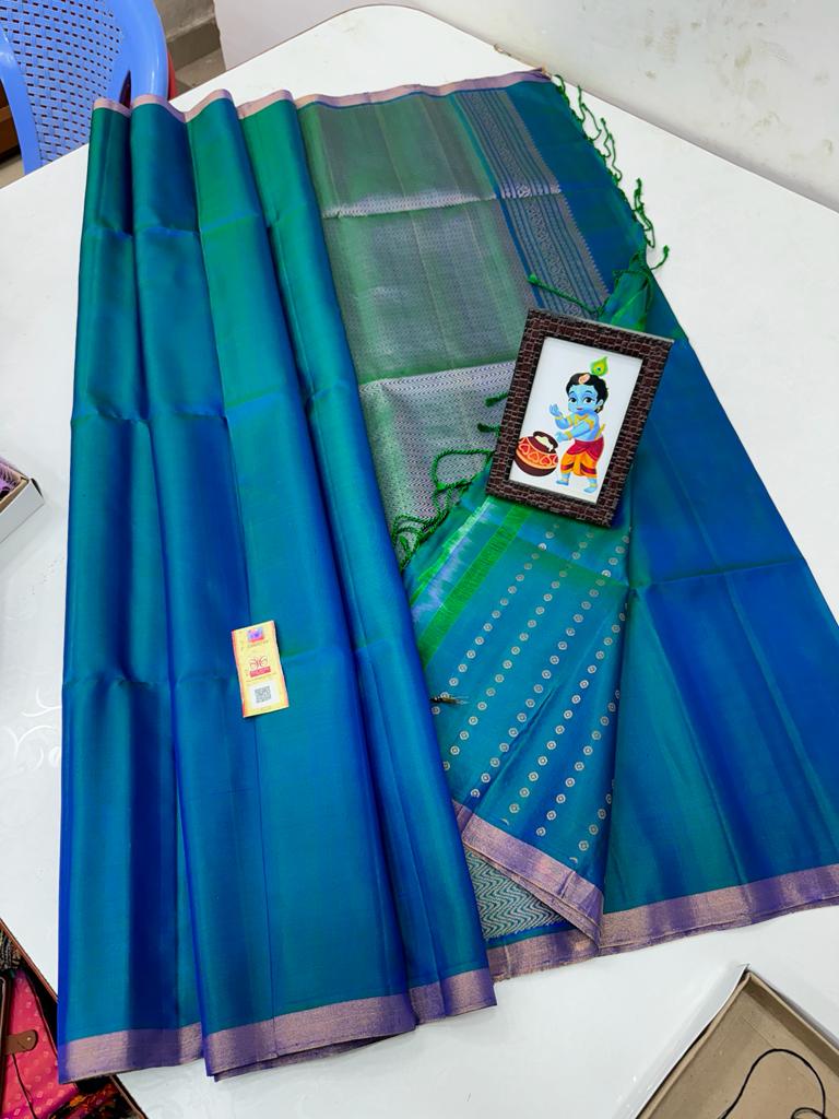 PURE KANCHIPURAM SOFT SILK HANDLOOM WITH UNIQUE COLLECTION BLOUSE WITH BORDER  Contrast Rich pallu with Tussels