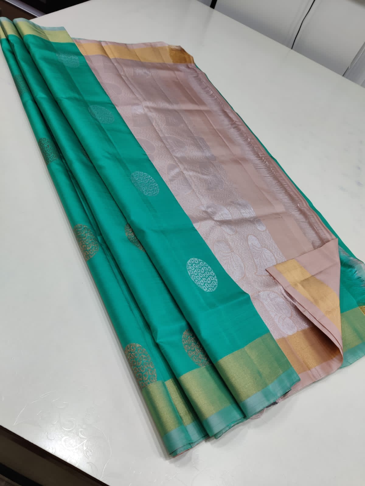 PURE KANCHIPURAM SOFT SILK HANDLOOM WITH UNIQUE COLLECTION BLOUSE WITH BORDER  Contrast Rich pallu with Tussels