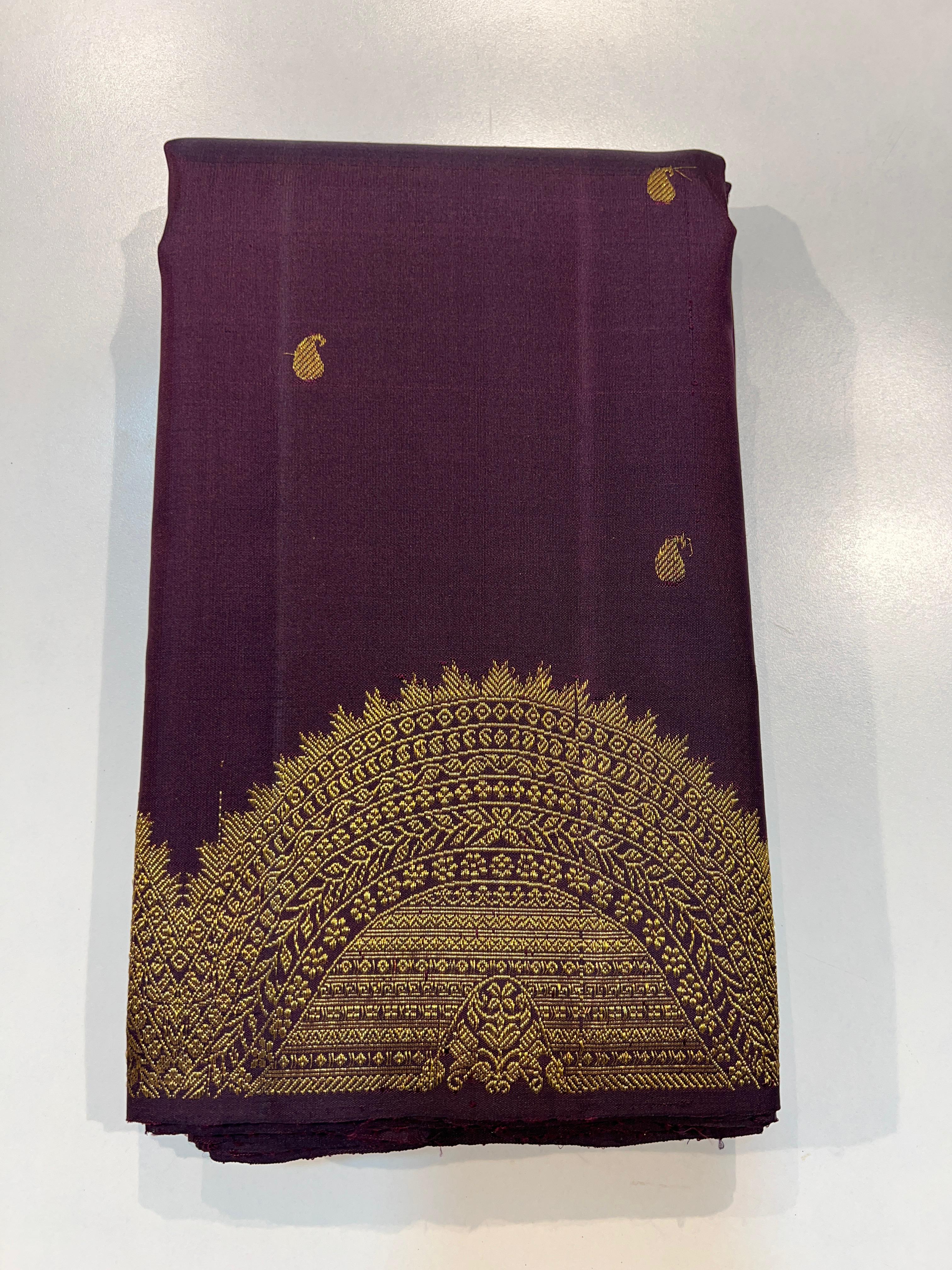 DARK VOILET  COLOUR  ZARI BORDER COMBITION PURE KANCHI SILK SAREE