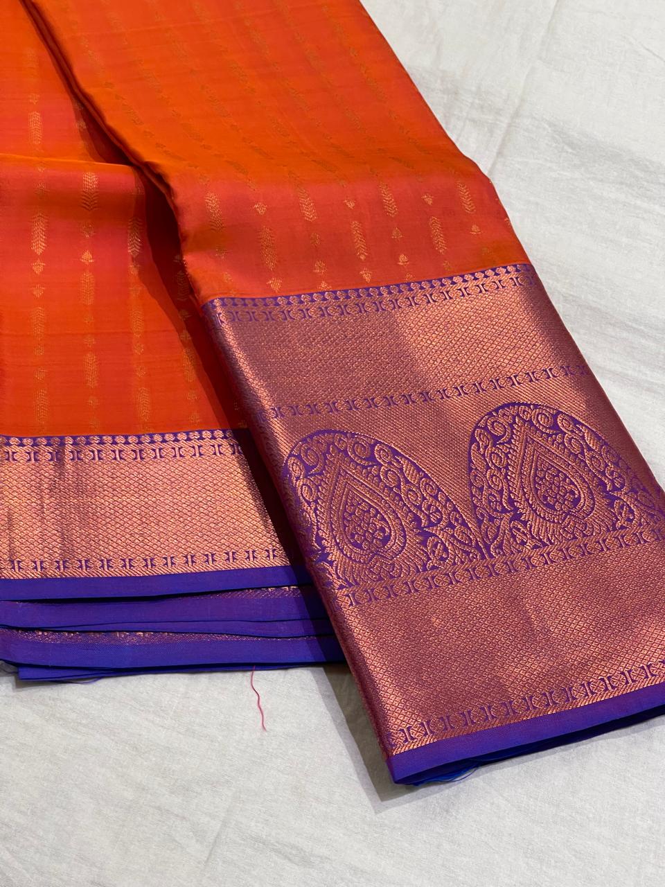 ORANGE/ROYAL BLUE COLOUR COMBITION PURE KANCHI SILK SAREE