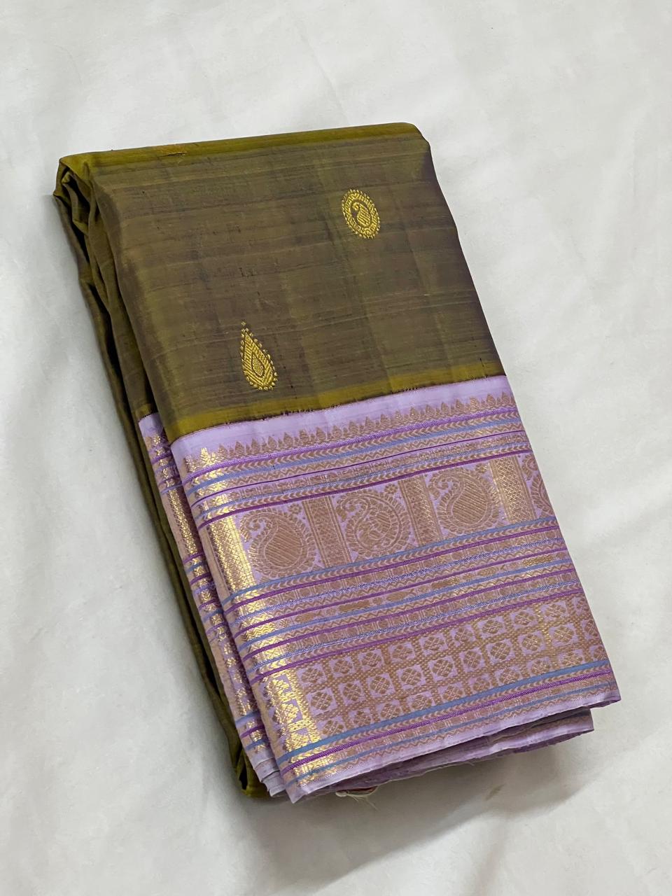 DARK MEHNDI GREEN/LILAC   COLOUR COMBITION PURE KANCHI SILK SAREE