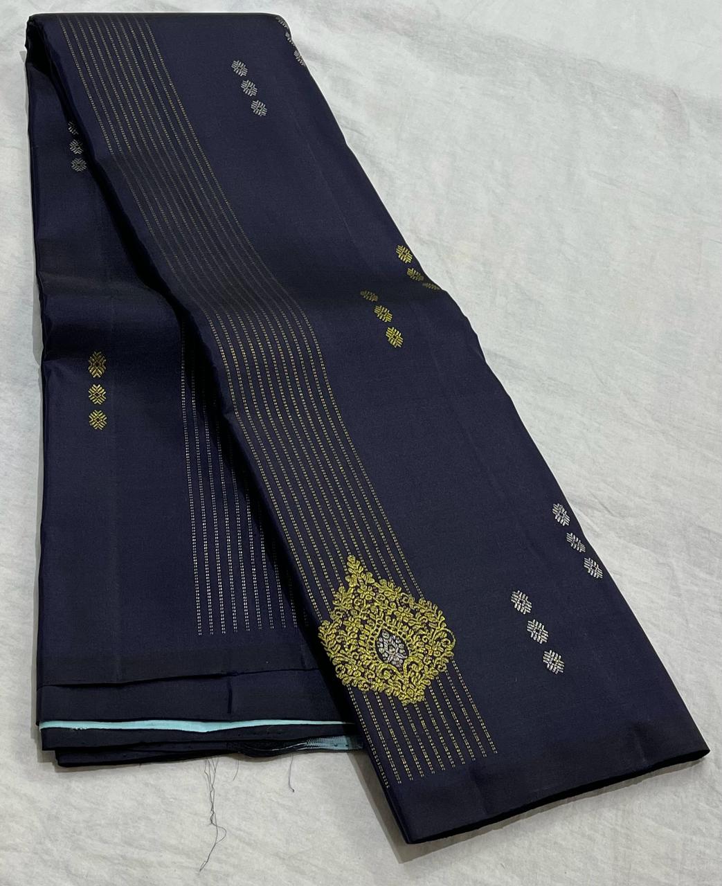 NAVY BLUE/SKY BLUE COMBITION PURE KANCHI SILK SAREE