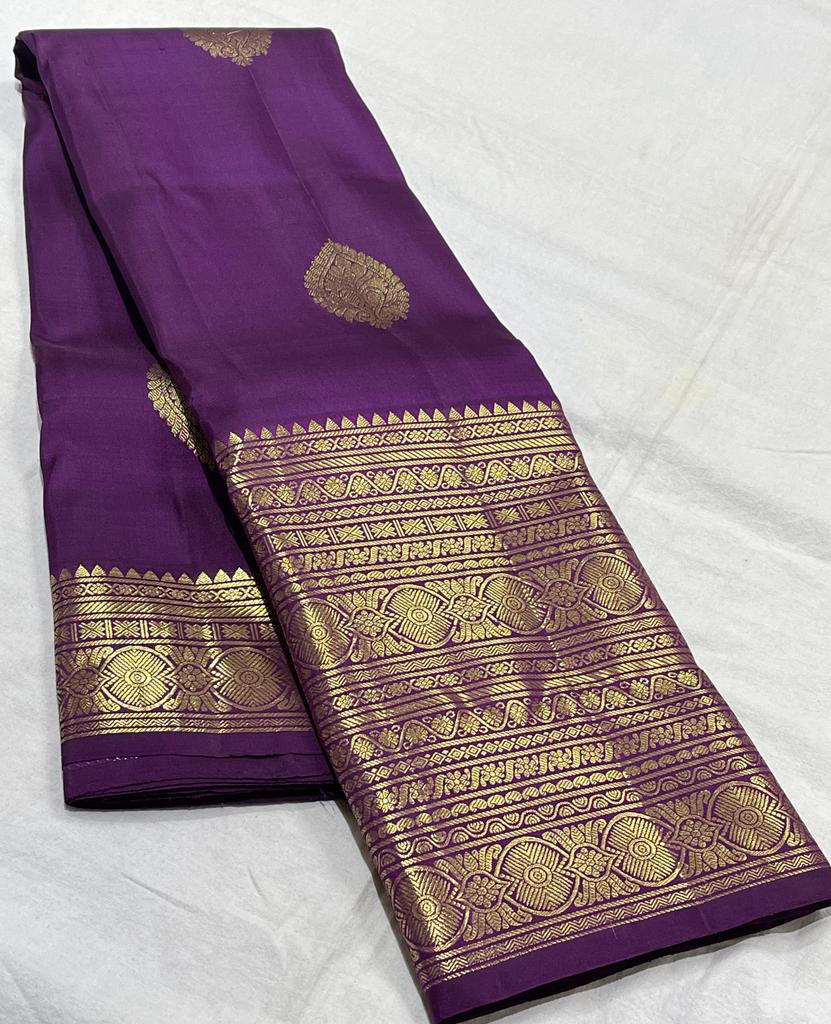 PURPLE  COLOUR  ZARI BORDER COMBITION PURE KANCHI SILK SAREE