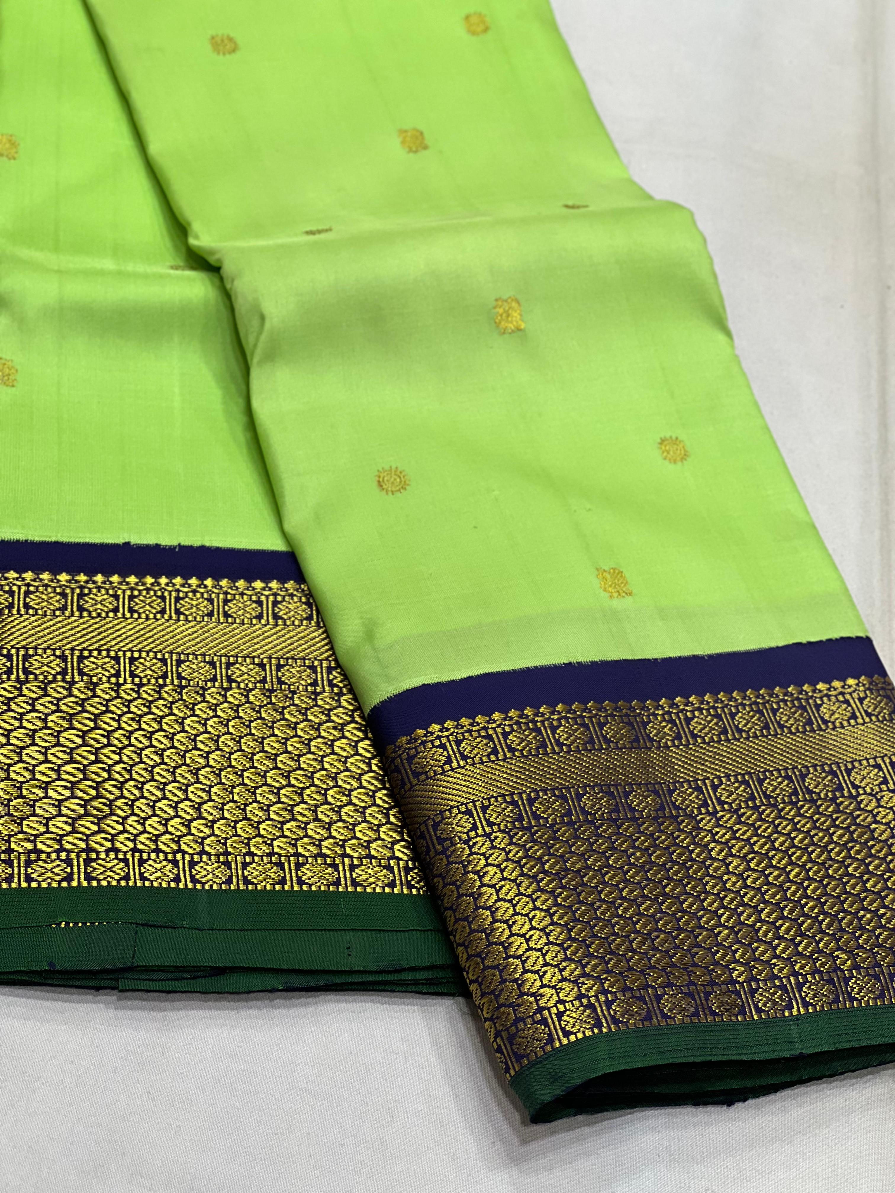 RADIUM GREEN/NAVY BLUE BORDER COMBITION PURE KANCHI SILK SAREE