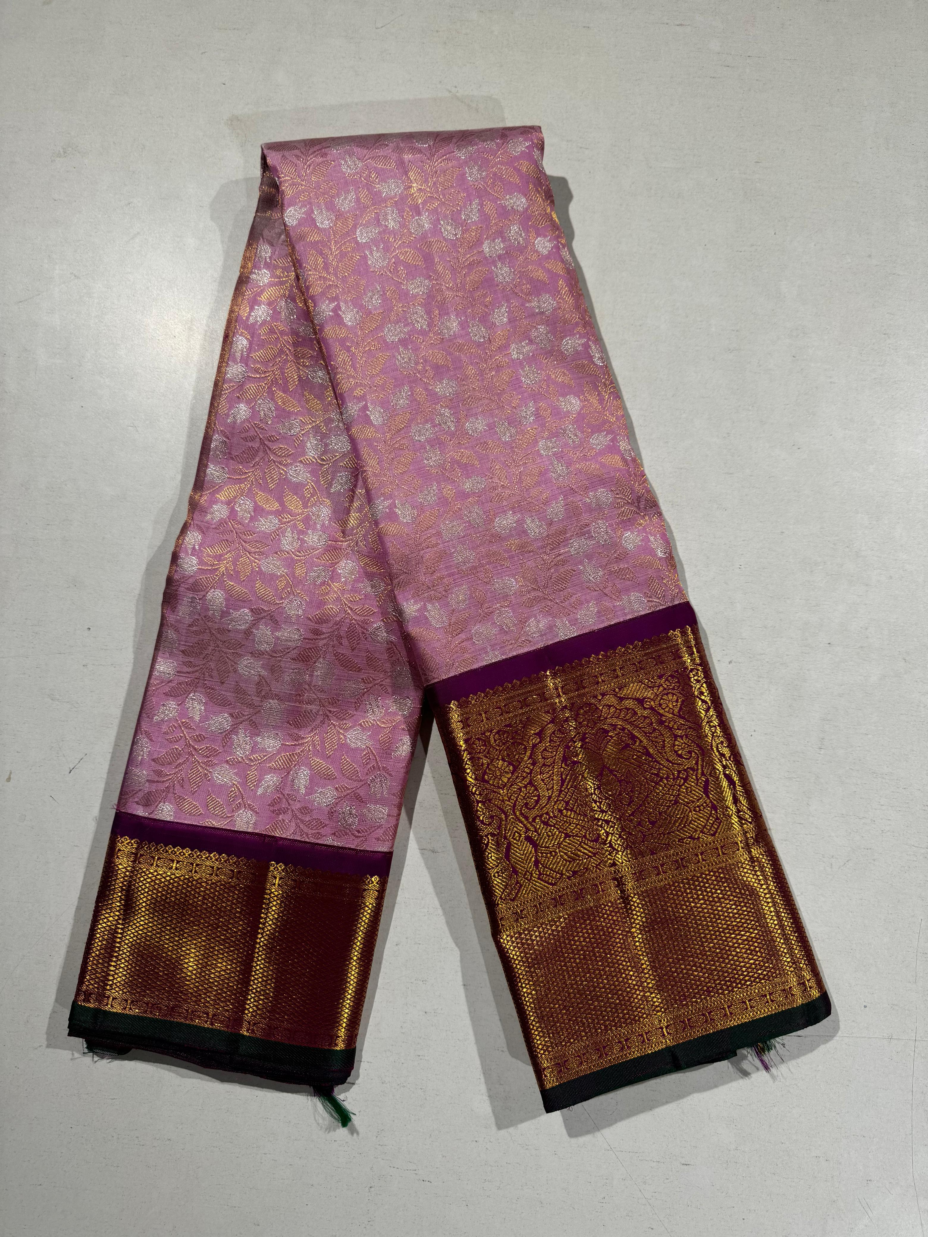 LILAC/MAGENTA PINK BORDER COLOUR COMBITION PURE KANCHI SILK SAREE