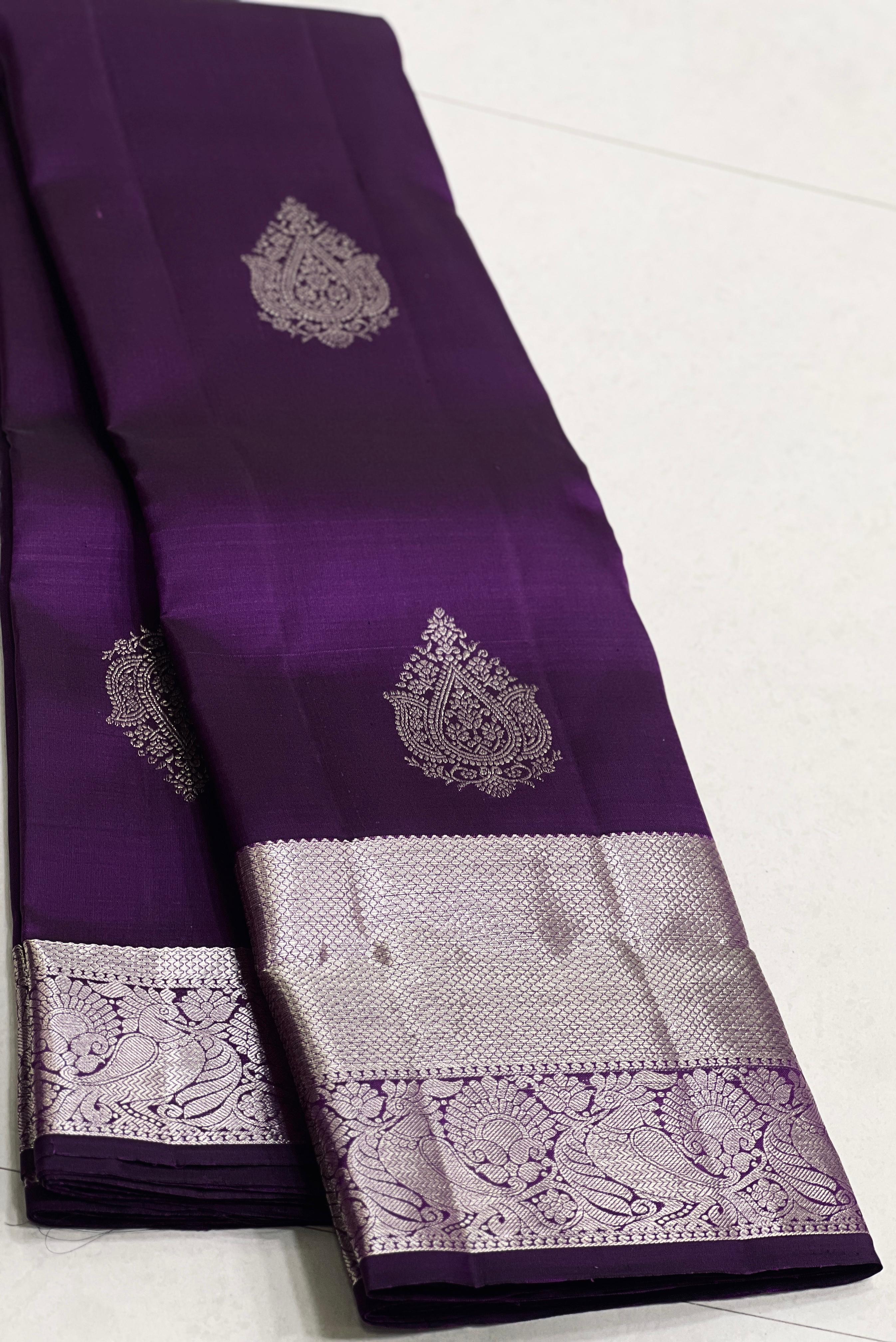 PURPLE BORDER COMBITION PURE KANCHI SILK SAREE
