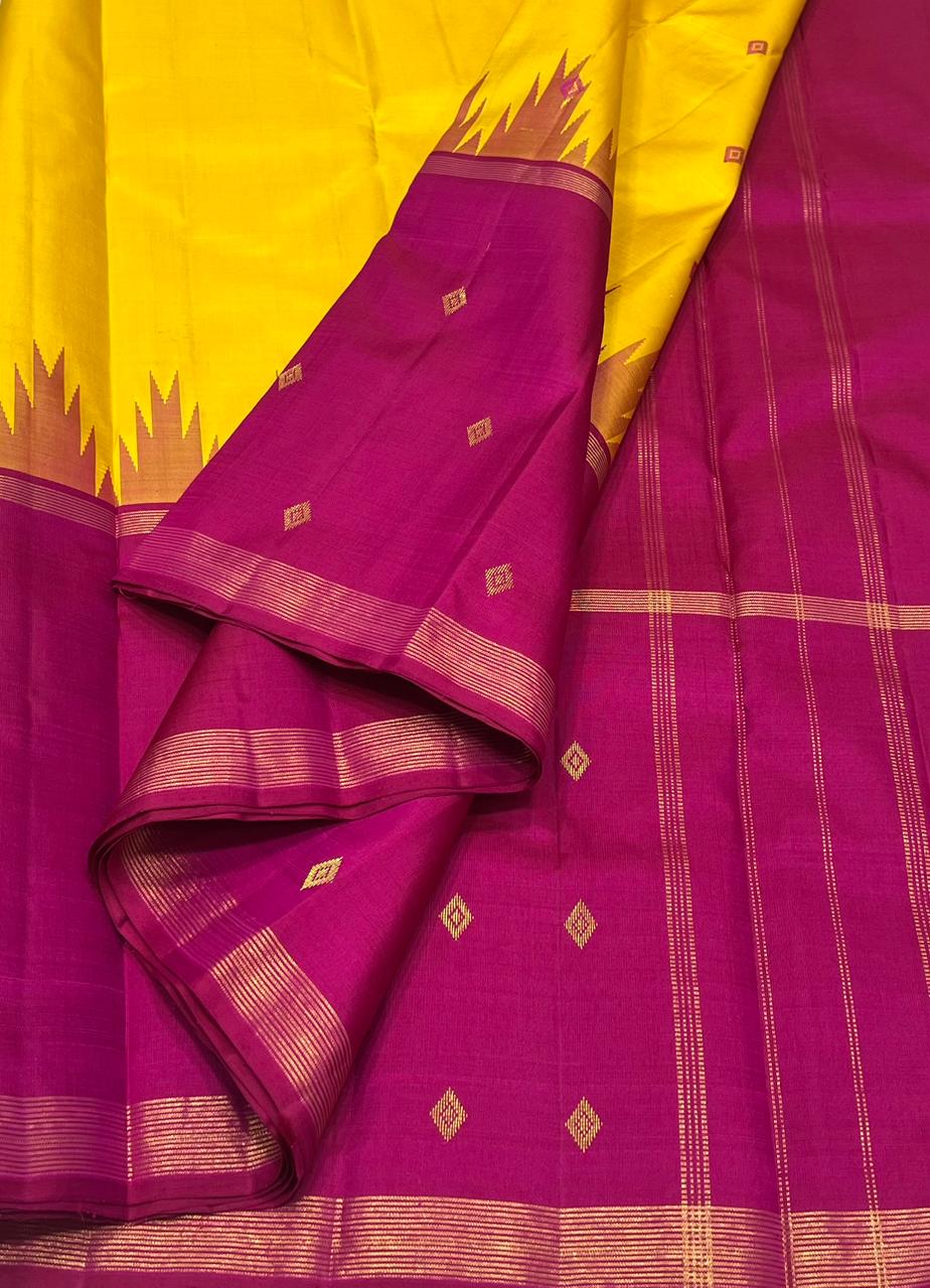 Combination that doesnt goes wrong.. Very nice pattu weaved saree with small details of multi colours border...