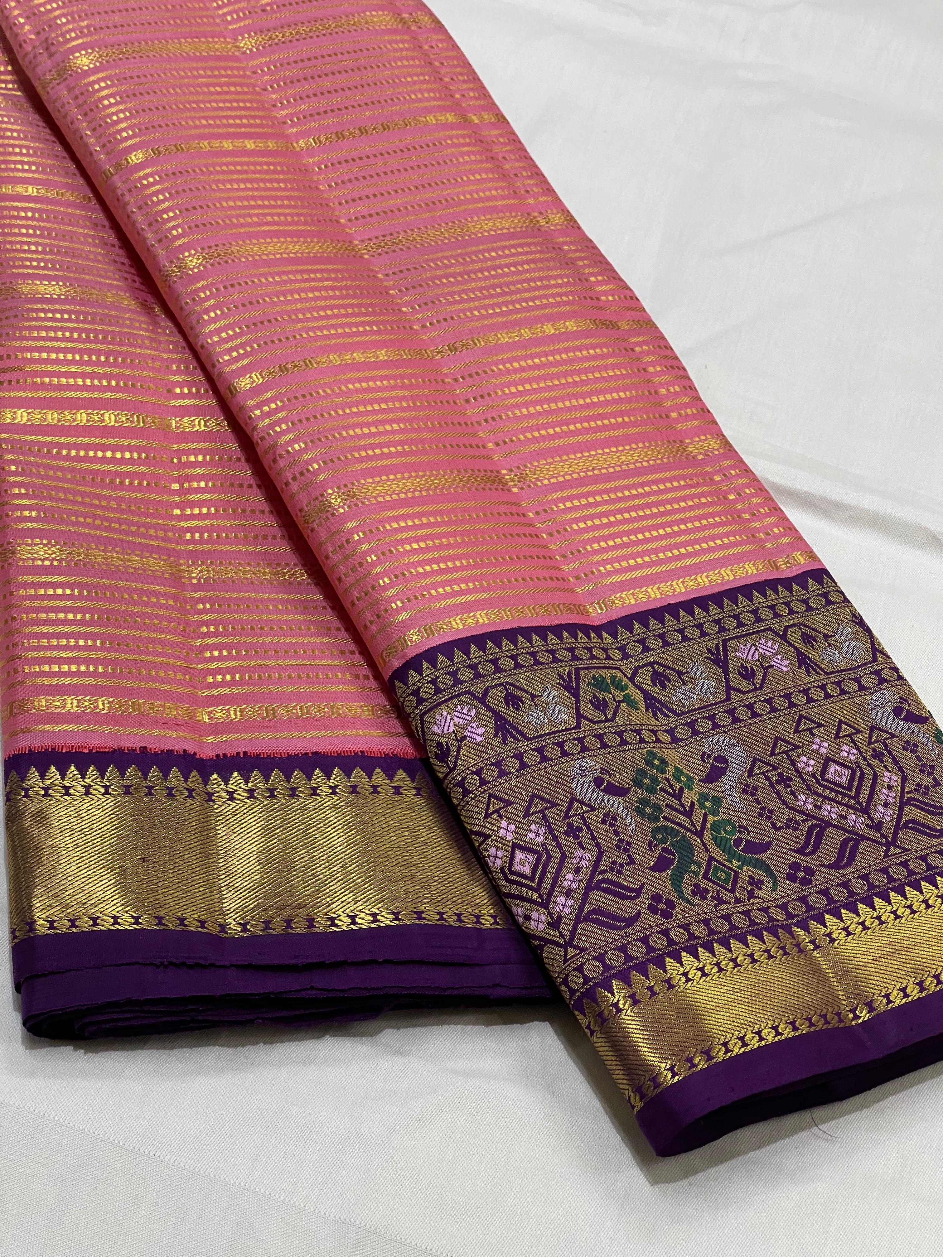 PEACH/PURPLE COLOUR ZARI BORDER COMBITION PURE KANCHI SILK SAREE