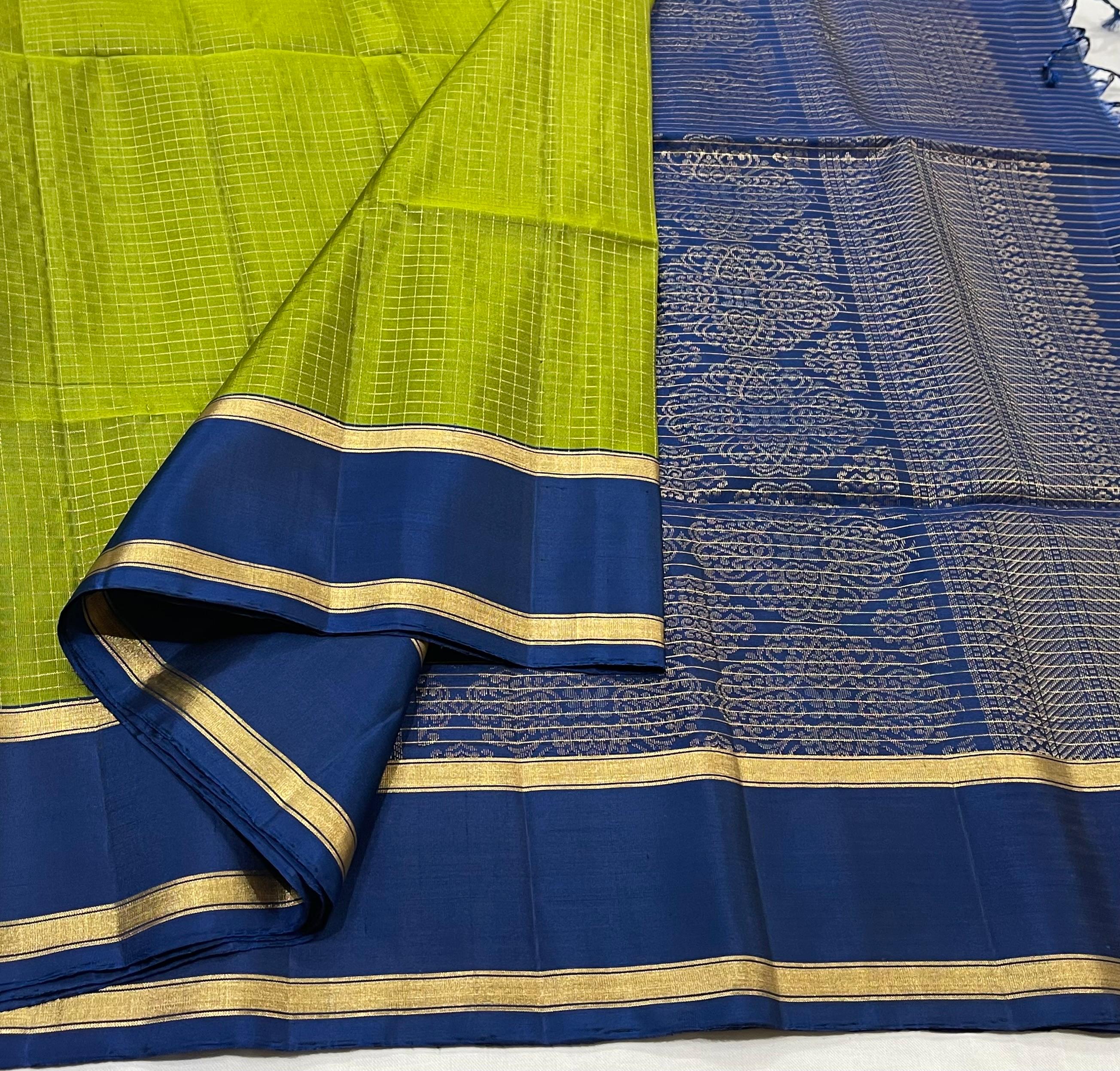 MEHANDI GREEN/ROYAL BLUE COLOUR ZARI COMBINITION PURE SILK SAREES