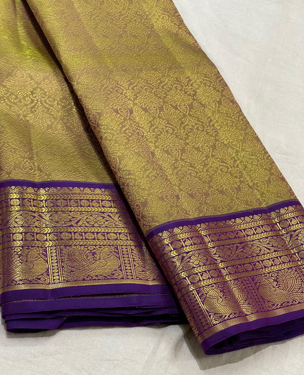 MEHANDI GREEN/PURPLE  BORDER COLOUR COMBITION PURE KANCHI SILK SAREE